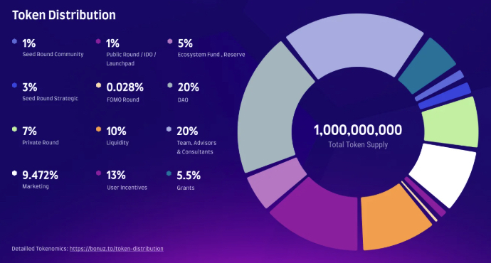 The Bonuz Ecosystem has a total token supply of 1,000,000,000 $BONUZ tokens.
